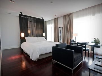 Confort y diseño en cada una de las 160 amplias y luminosas habitaciones. Grandes ventanales y terrazas para disfrutar magníficas vistas al golf, a la laguna y a la reserva natural.